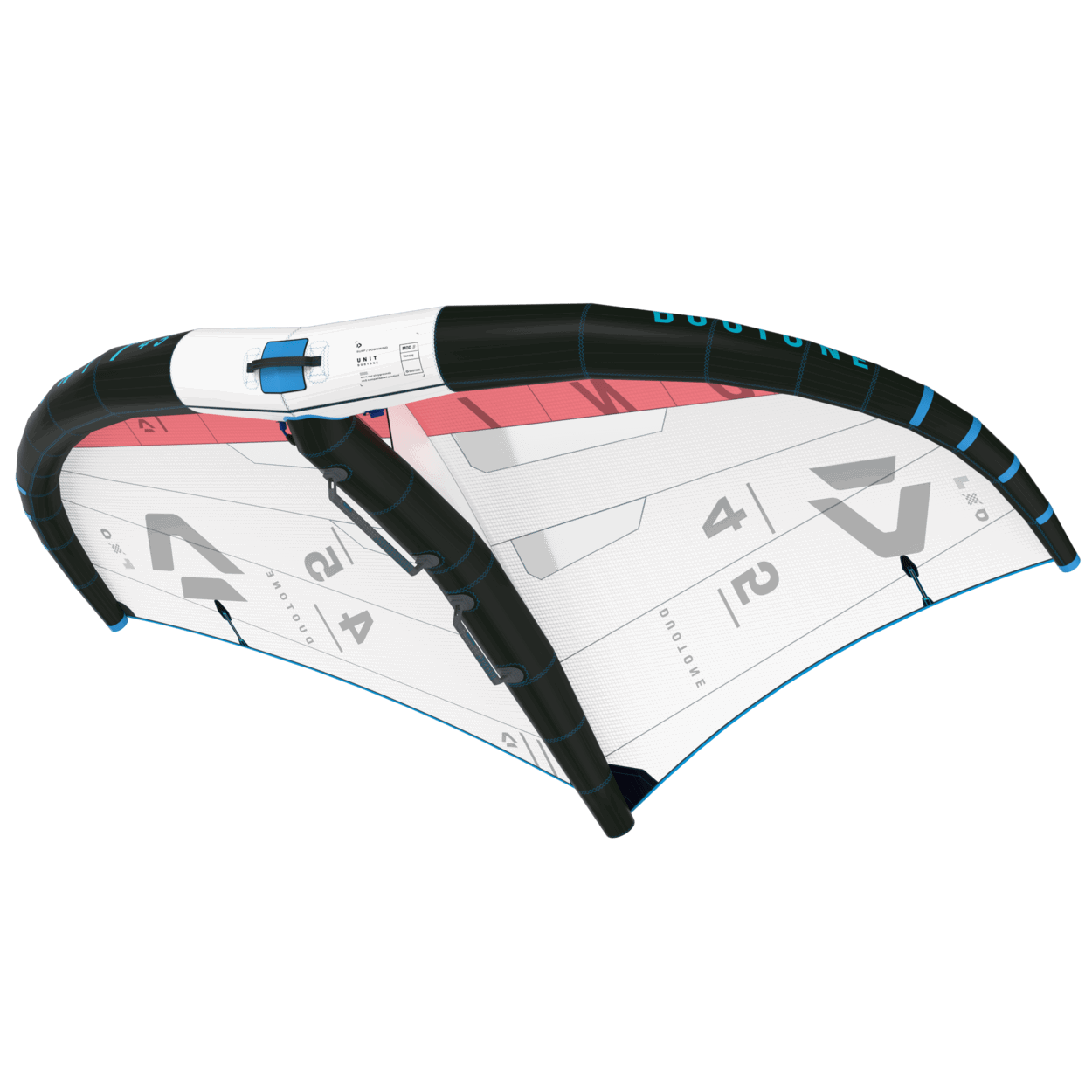 The 2024 Unit is yet taken another step ahead of the pack and is spiced with a new level of riding comfort, improved drift stability and features you simply don’t want to miss.The Duotone Unit led the way in Wing design over the past years. Many of our competitors tried to copy and match the performance and handling, yet with the combination of wing design, technology and materials the Unit is still the benchmark out there.The 2024 model brings us another step forward with the introduction of a long carbon front handle allowing one-handed riding, an angled strut, which increases the riding comfort and with tweaks on the outline, twist and canopy tension further improving the Units power delivery and drift stability.Designer Ken Winner optimized the angles of the strut in the handle area, resulting in a more natural riding position with the back arm being straighter and not constantly pulled in, which is especially noticeable when riding toe side.The second great improvement to the handling is the introduction of a significantly longer carbon front handle, allowing the rider to bring the front hand further back and fly the wing one-handed for minutes. A benefit which opens doors to new tricks and a level of riding comfort you don’t want to miss.With further refinements to the outline and curvature as well as the twist and tension of the MOD3 canopy, the new Unit flies more precise and stable when sheeted in and has a more neutral drift when flagged out on the wave.Whether you’re into pure and effortless carves in the surf, want to boost big airs with solid hang time or simply want to go straight forward with plenty of lift and power - the 2024 Unit is a real Winner – not only by the Designers Name – equally by the outstanding performance and its handling!